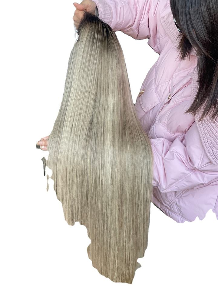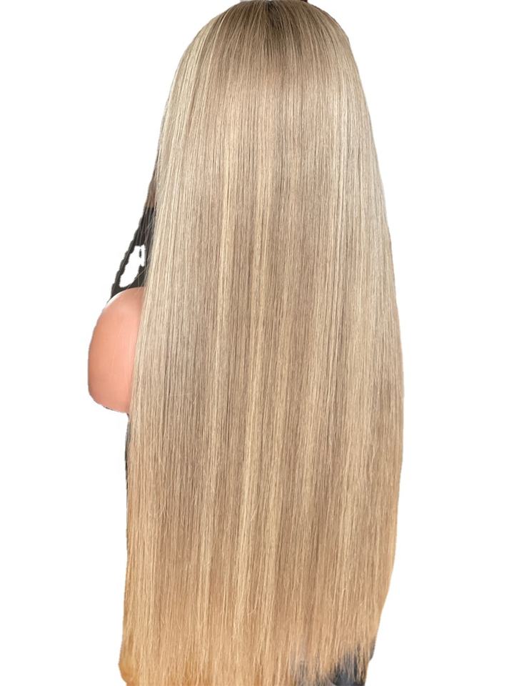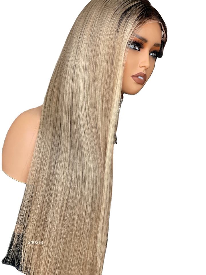 Shy Luxury Desgin 5*5 HD Lace Closure Wig Straight Wigs Human Hair With Blond Highlight Long Hair Wig for Beautiful Girl