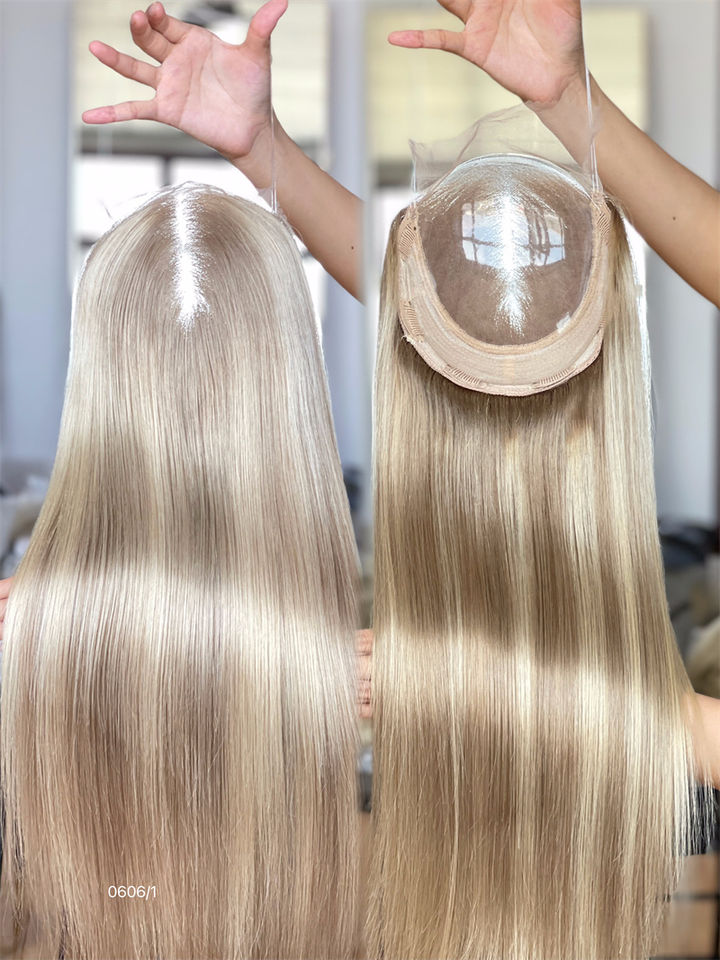 ผมเรกเม่สีบลอนด์ฐานขนาดใหญ่สำหรับผู้หญิงเสื้อท็อปเปอร์ผมลอนทรงหลวม8*8ที่ดึงออกมาได้ง่ายติดตั้งง่าย