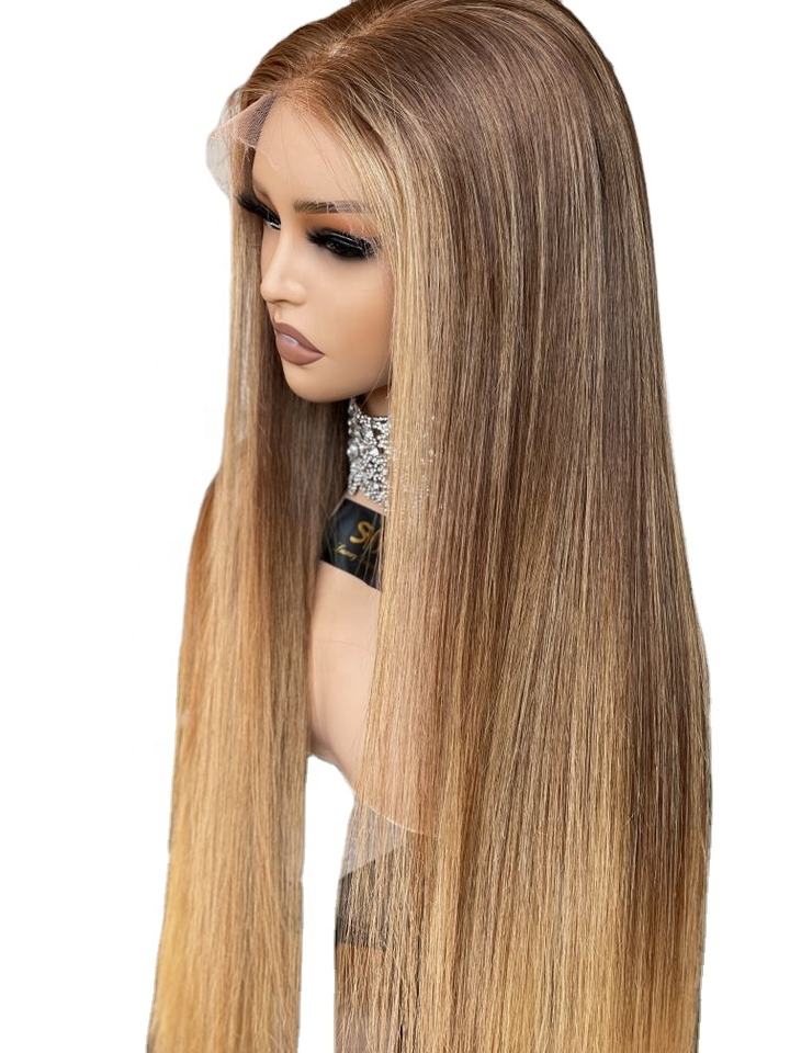 วิกผม100% แท้ยาว13*4เส้นทำจากผ้าลูกไม้สีบาลายาจ