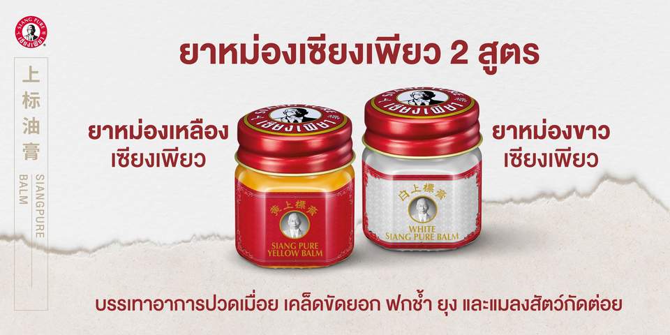 เซียง เพียว เยลโล บาล์ม 12 กรัม นวดแผนไทยบรรเทาอาการปวดกล้ามเนื้อ แมลงกัดต่อย อาการเมารถ ผลิตภัณฑ์ของประเทศไทย