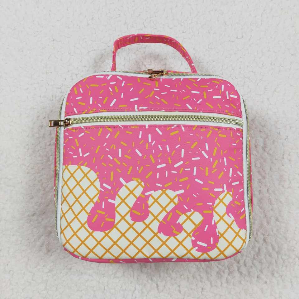 กระเป๋าสะพายหลังโรงเรียนดีไซน์หยดน้ำสำหรับใส่ไอศกรีมสีชมพูพร้อมกล่องอาหารกลางวันที่เข้ากัน
