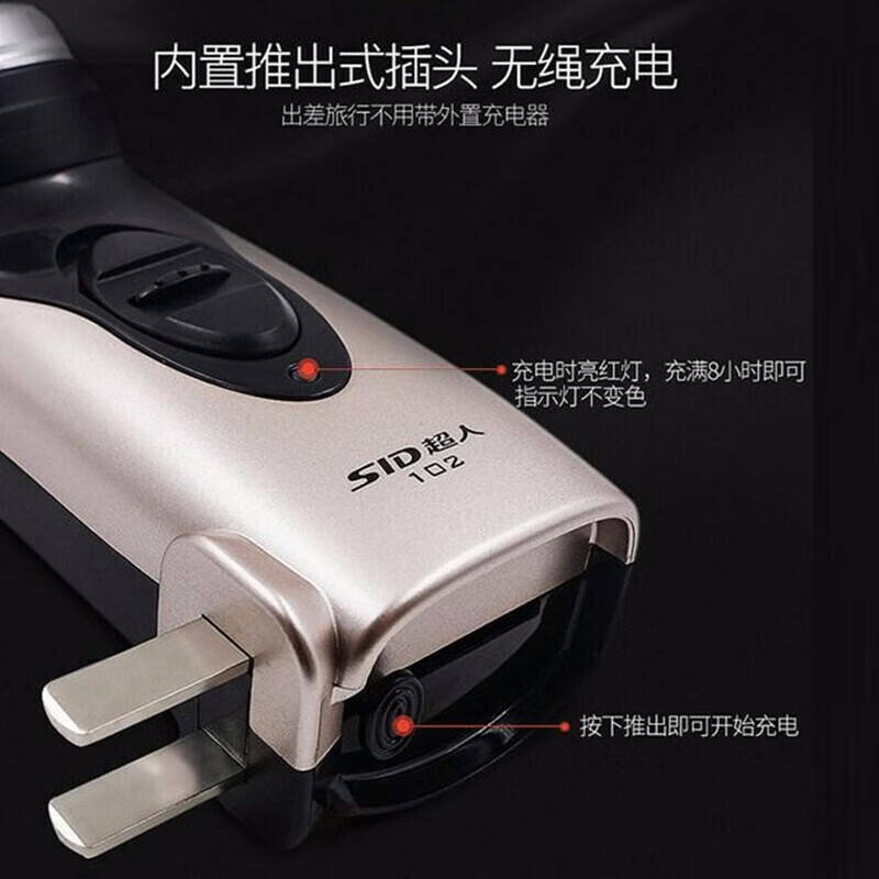 เครื่องโกนหนวดไฟฟ้าซิด รุ่น RS102 ตัวเครื่องโลหะแบบชาร์จได้สำหรับผู้ชาย พร้อมด้ามจับยาวและที่เล็มขนแบบกดออก