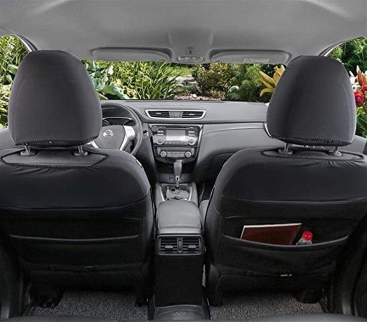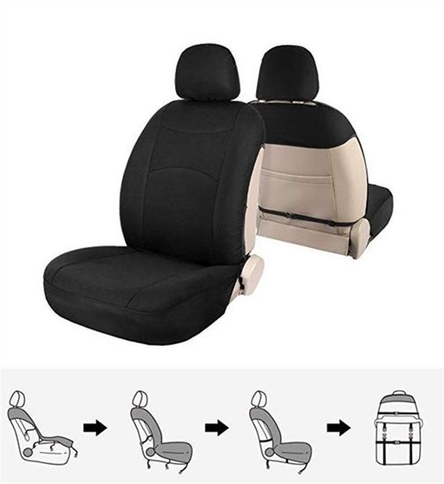 ผ้าคลุมเบาะรถยนต์ด้านหน้าแบบติดตั้งเร็ว ไม่ต้องเย็บ รุ่น Fuga สีดำ
