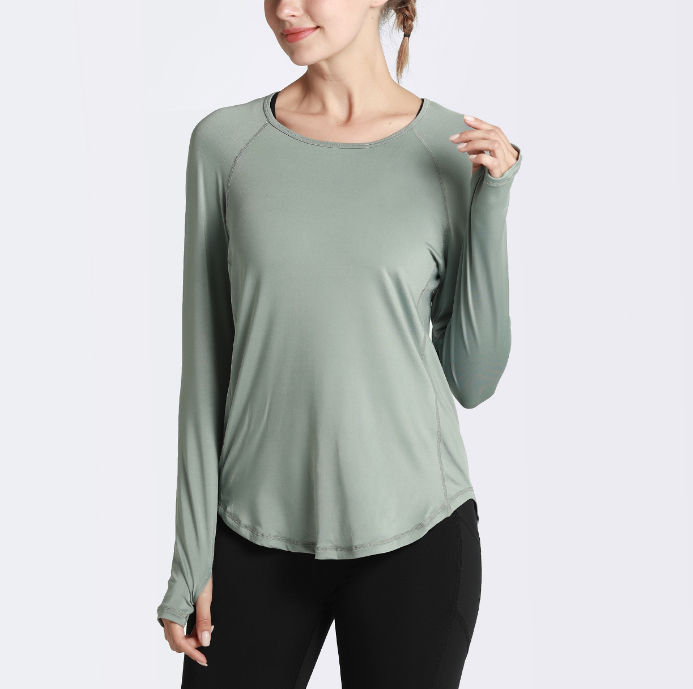 เสื้อยืดลำลองแขนยาวสำหรับผู้ชายเสื้อเชิ๊ตออกกำลังกายแบบมีรูนิ้วหัวแม่มือ