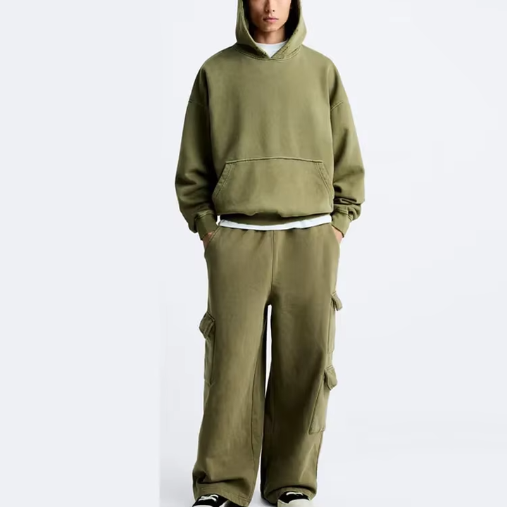 เสื้อมีฮู้ดและกางเกงผ้าคอตตอนโอเวอร์ไซส์มีกระเป๋าด้านข้างทรงโอเวอร์ไซส์