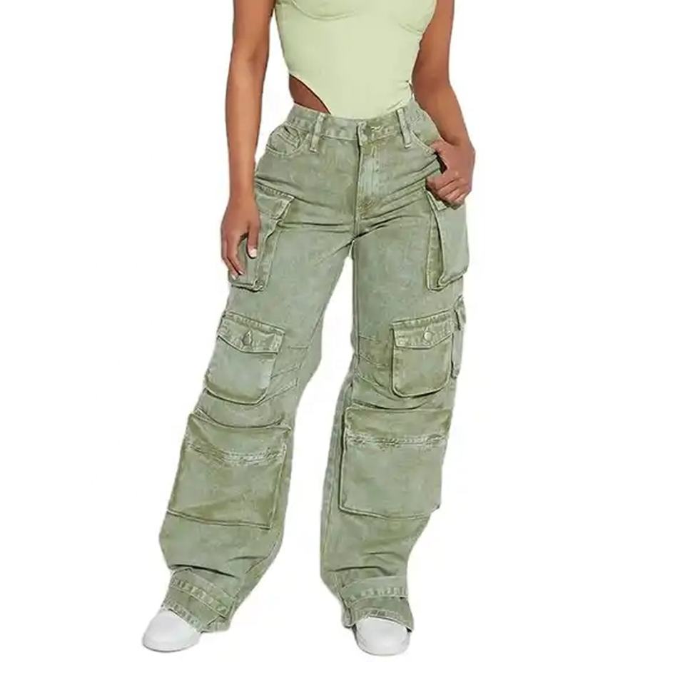 กางเกงขายาวผ้าคอตตอนมีฮาเร็มมีหลายสีสำหรับผู้หญิงมีกระเป๋าด้านข้างแบบสั่งตัดโลโก้แบบลำลอง