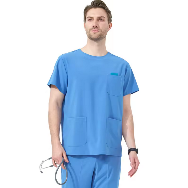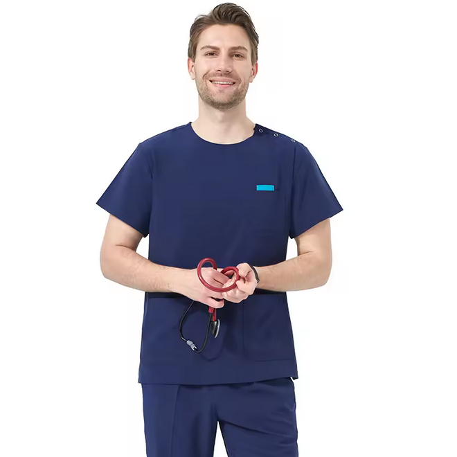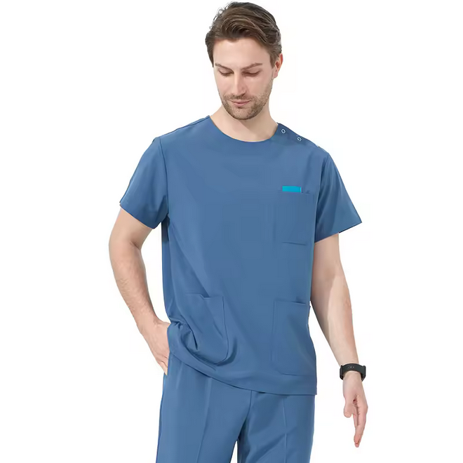 ชุดเครื่องแบบผ้ายืดปุ่มสแนปปิดไหล่ข้าง