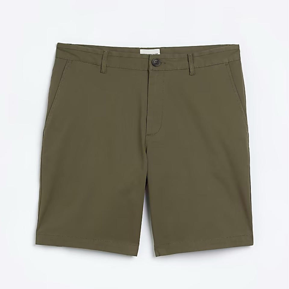 กางเกงขาสั้นชิโน่ทรงสลิมฟิตสีเขียวผ้าฝ้าย98%,กระดุมห่วงและซิปด้านข้างสลิปกระเป๋าเข็มขัดผ้าคอตตอน2%