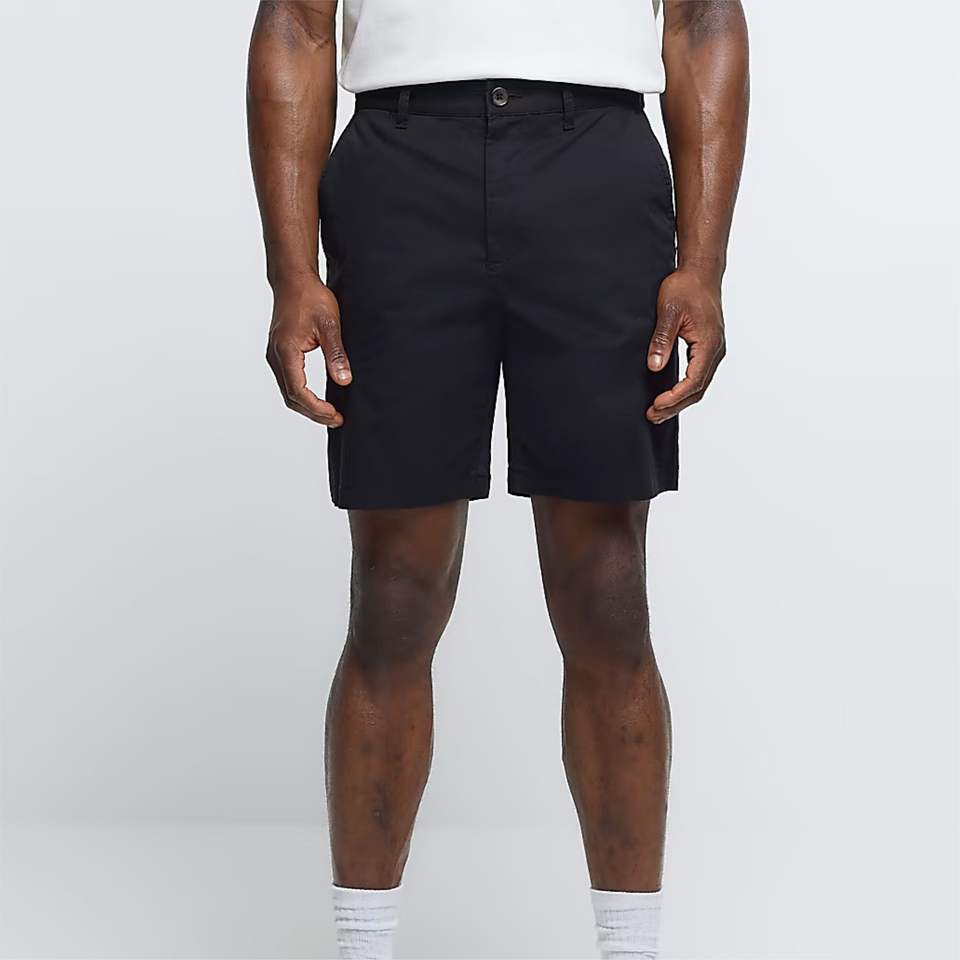 กางเกงขาสั้นชิโน่ทรงสลิมฟิตสีดำ98%,กระดุมห่วงกระเป๋าข้างและซิปรัดผ้าฝ้าย2%