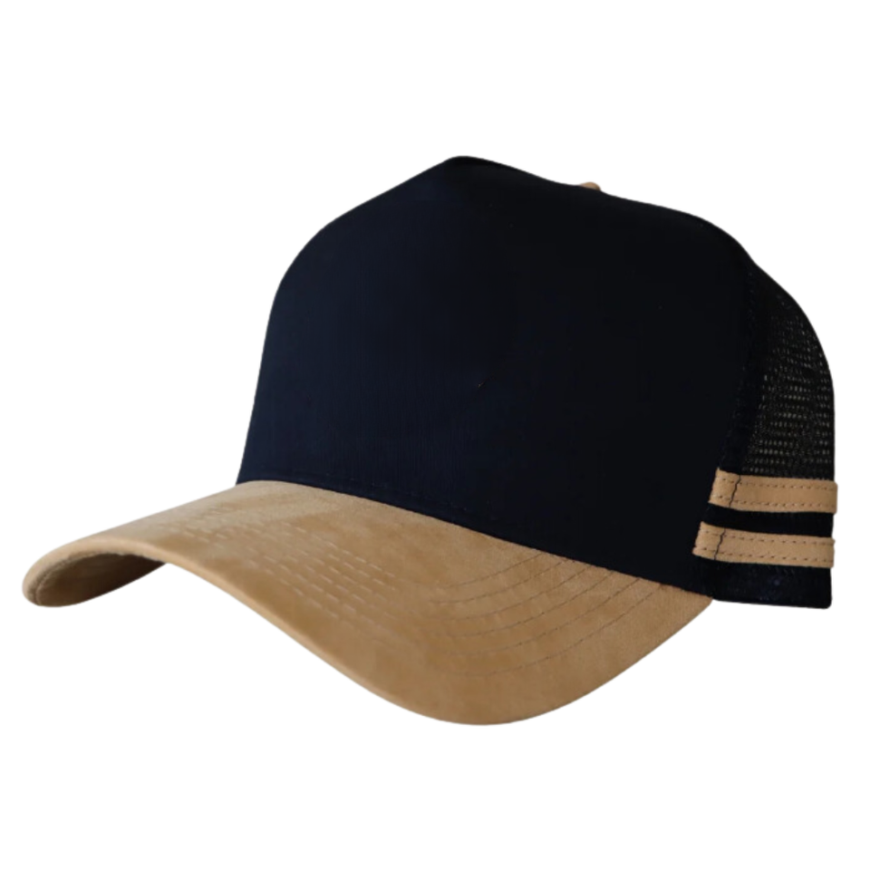 หมวกทรูเกอร์ด้านข้าง5แผงปักโลโก้สีเบจ/ชมพูดำ SnapBack หัวเข็มขัดแถวเดียวสไตล์ออสเตรเลียใช้ได้ทั้งชายและหญิง