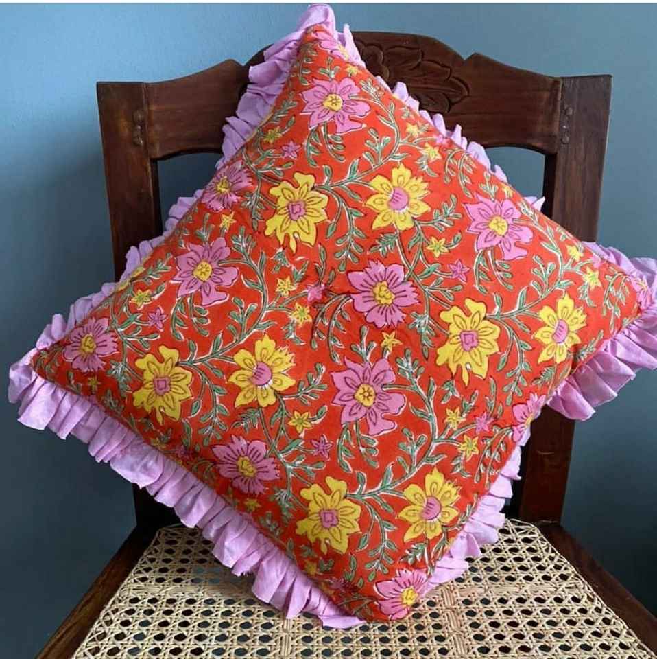 ปลอกหมอนอิงผ้าฝ้ายอินเดียพิมพ์ลายดอกไม้สไตล์ด้านข้างทำจากผ้าฝ้ายบริสุทธิ์สำหรับใช้ในบ้านและโรงแรม