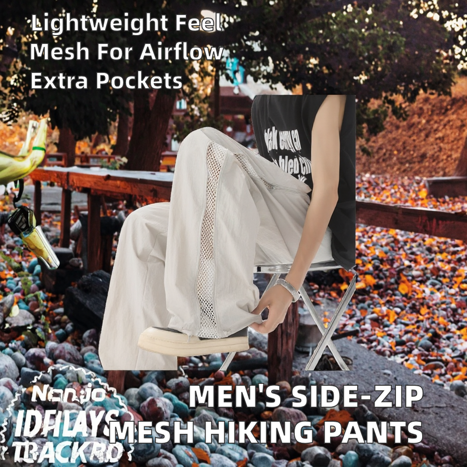 กางเกงเดินป่าผู้ชายแบบซิปข้างสำหรับฤดูใบไม้ร่วง น้ำหนักเบา สวมใส่สบาย เอวกลาง ทรงตรง ระบายอากาศได้ดี ผลิตจากโพลีเอสเตอร์ แฟชั่นทันสมัย