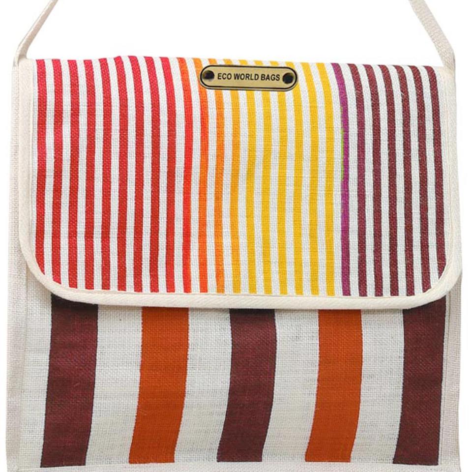 West Bengal กระเป๋าช้อปปิ้งแบบถือเทปทอแบบยาว, กระเป๋าปอกระเจาด้านข้างพิมพ์ลายสวยและดีไซน์แบบฝาปิดด้านหน้า
