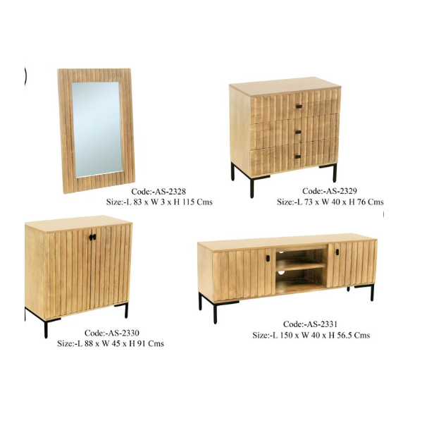 Sideboard 2 Door 4 Drawer Solid Mango Wood Naturel Finish & Black Finish Metal Iron Base Back Mdf