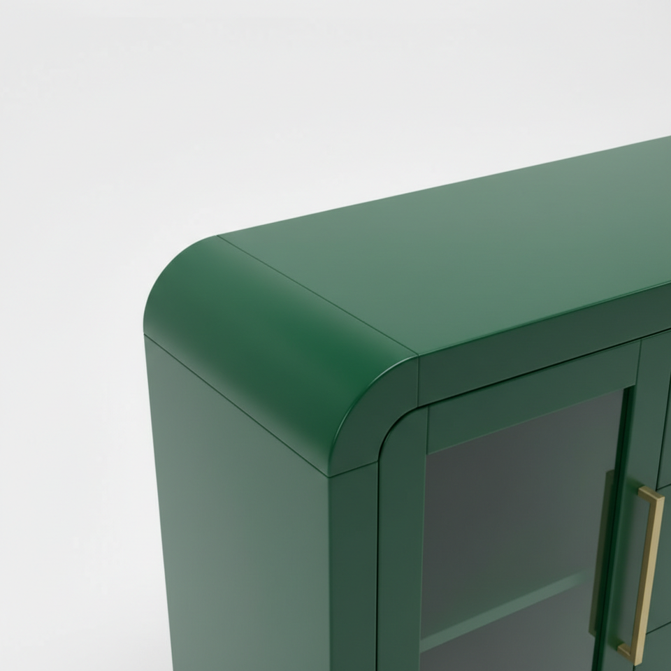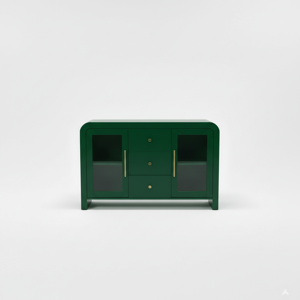ตู้ไซด์บอร์ด ตู้บุฟเฟ่ต์ห้องนั่งเล่น ตู้คอนโซลพร้อมลิ้นชักกลางสามช่องและกระจกด้านข้างสองด้าน ดีไซน์ทันสมัย สีสันโดดเด่น