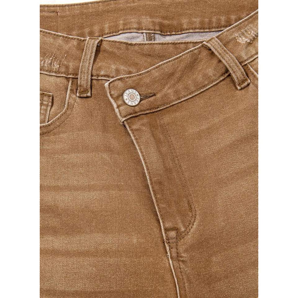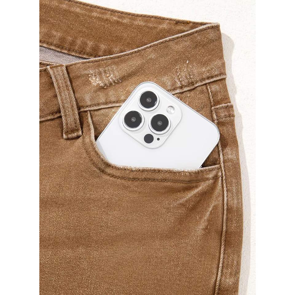 Sidefeel กางเกงยีนส์เอวสูงสำหรับผู้หญิง, กางเกงยีนส์เอวสูงมีกระเป๋าระบายอากาศได้ดีมีโบว์