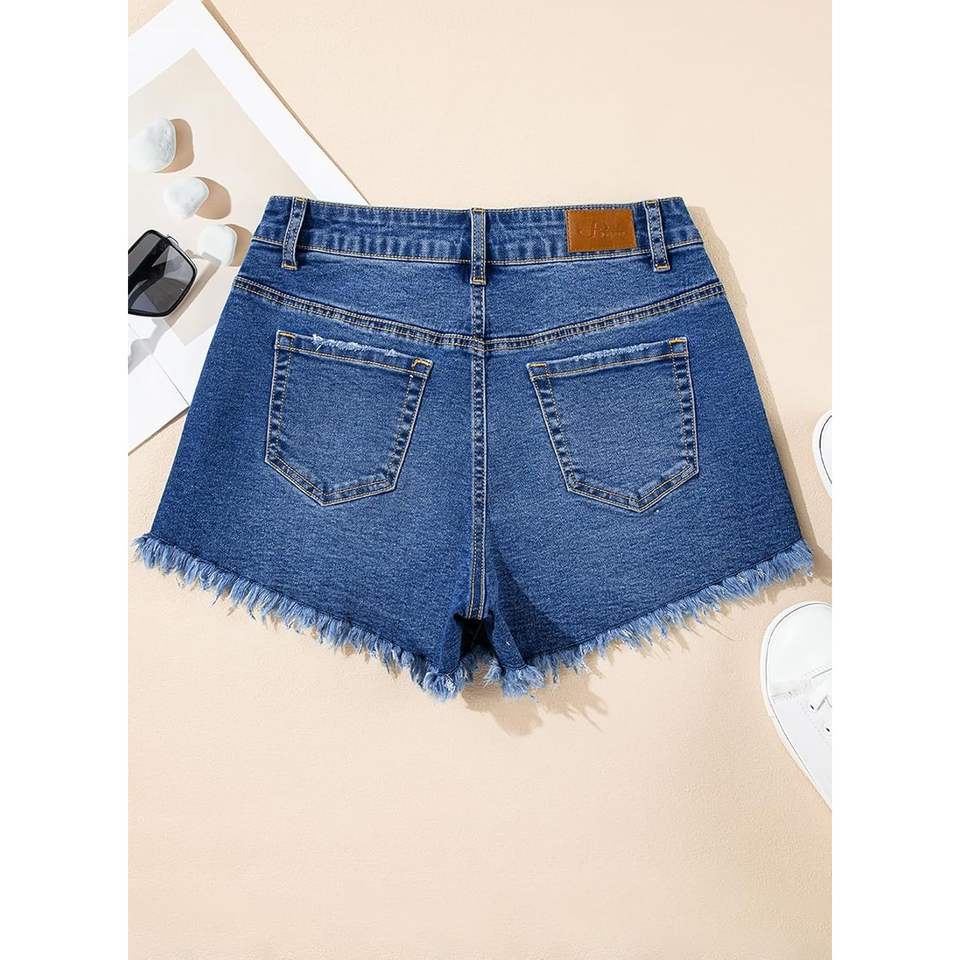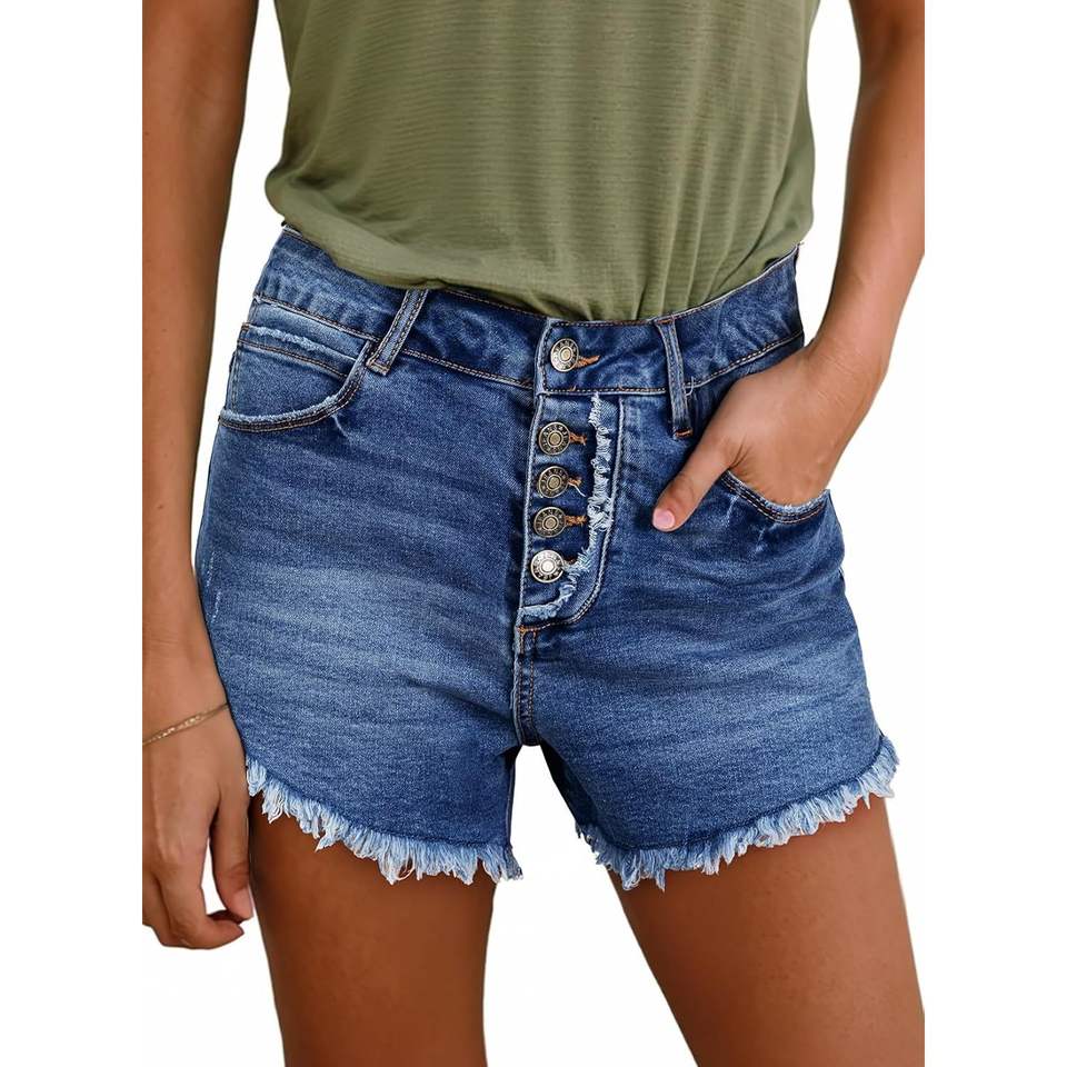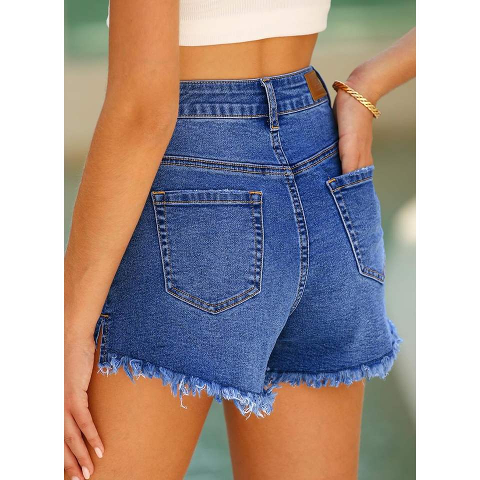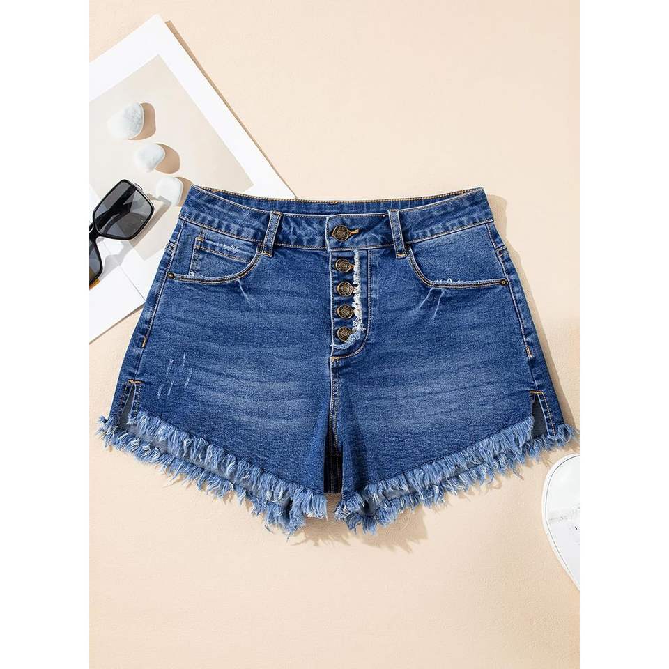 Sidefeel กางเกงยีนส์เอวสูงสำหรับผู้หญิง, กางเกงขาสั้นผ้ายีนส์ผ้ายีนส์เอวผ่ากลางแบบมีกระดุมผ่าข้าง