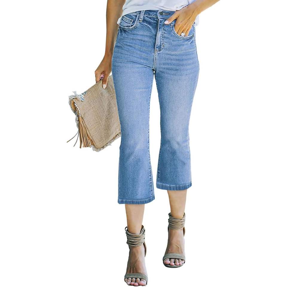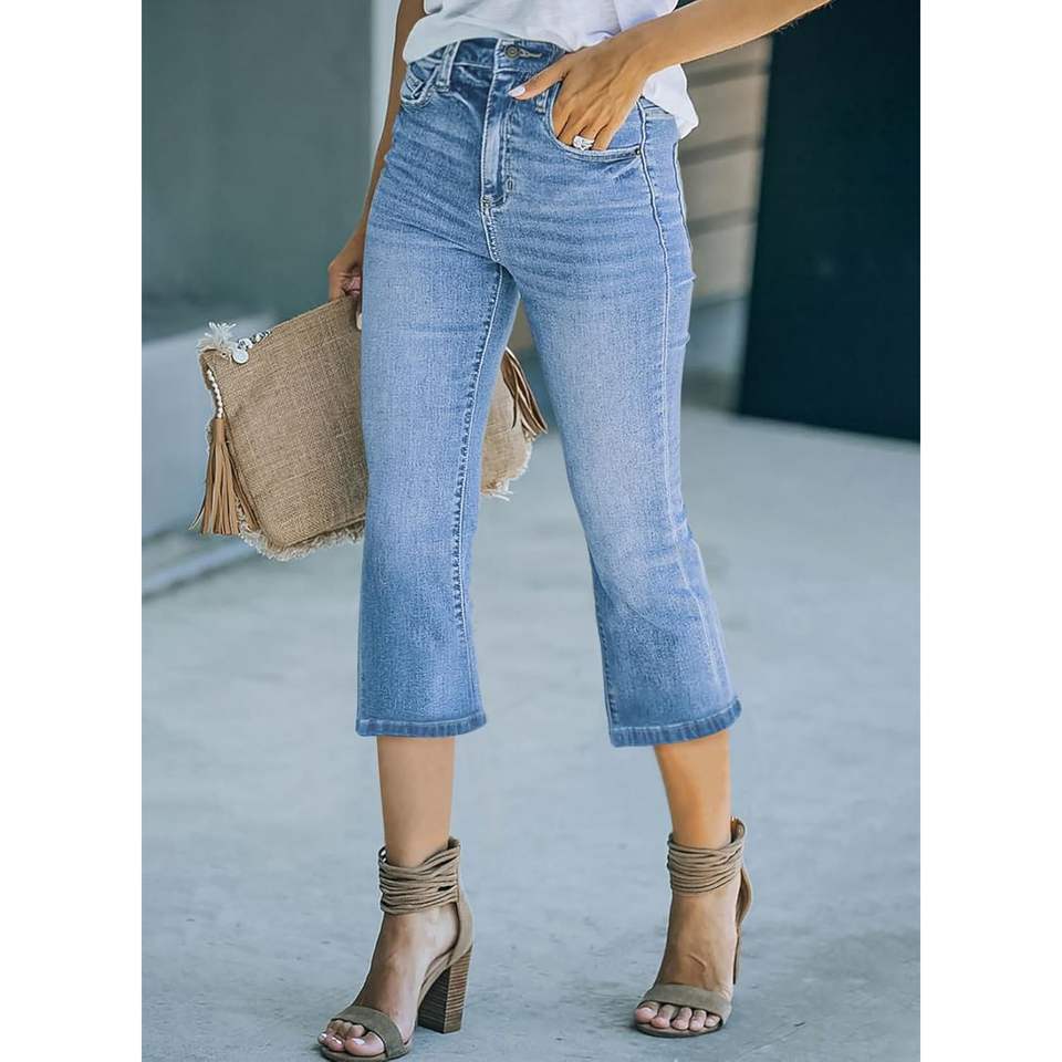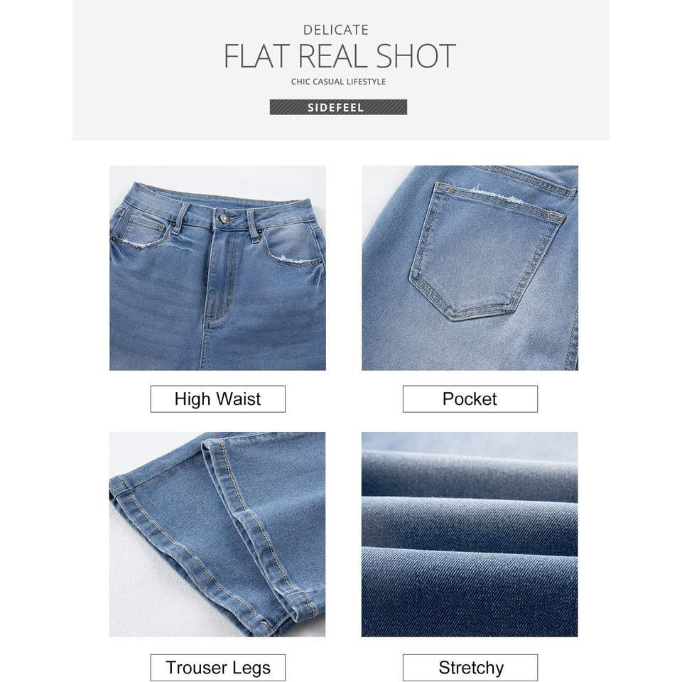 Sidefeel กางเกงยีนส์ขายาวผ้าเดนิม Zimbaplatinum ทรงกระดิ่งเอวสูงสวมใส่สบาย
