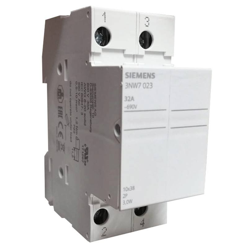 ฟิวส์แบบตลับของซีเมนส์ 3NW7 023 2P 32A 10x38 มม. แบบเป่าเร็ว แรงดันต่ำ แบบพลาสติก ขาแบบแกน