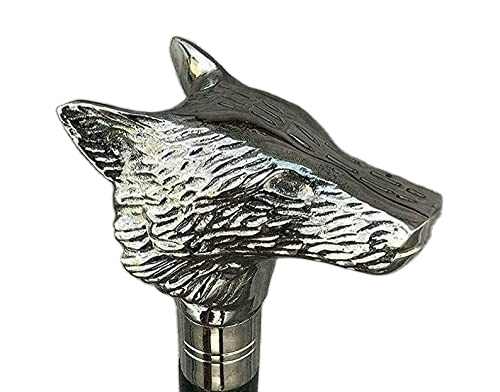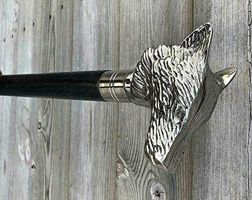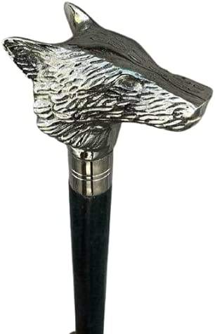 Sier Nebula ไม้เท้าเดินไม้หัวหมาป่าทันสมัยไม้เท้าทำด้วยมือพร้อมที่จับยางกิจกรรมกลางแจ้งเป็นของขวัญให้คนรักของคุณ