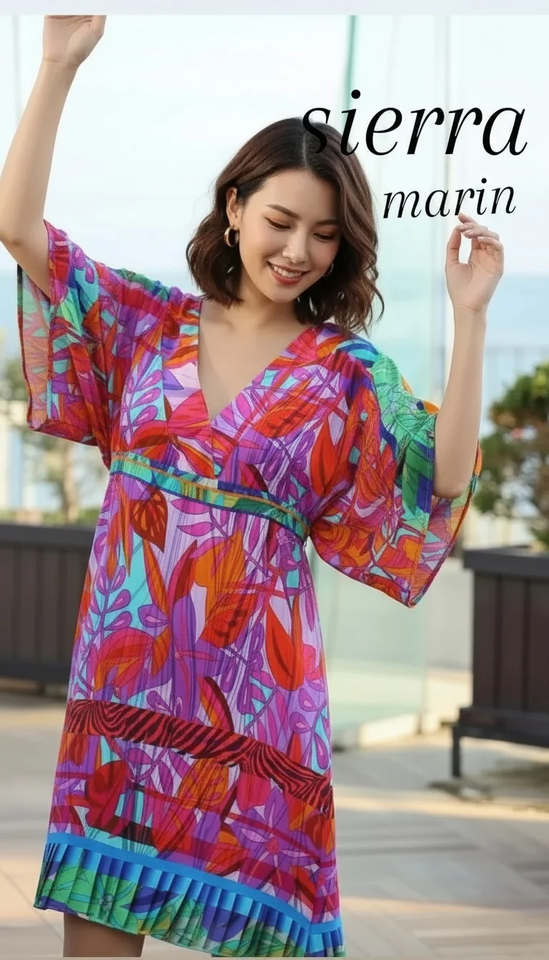 เดรสทรงดินสอผ้าฝ้ายลายดอกไม้สไตล์วินเทจ ยี่ห้อเซียร์รา มาริน ระบายอากาศได้ดี ความยาวระดับเข่า เนื้อผ้านุ่ม 100% ผ้าฝ้าย