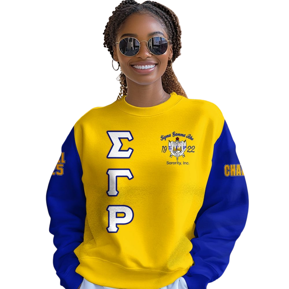 Sigma เสื้อกันหนาวคอกลม1922แกมม่า Rho สีน้ำเงินทองเสื้อผ้าสโมสรขนแกะแบบสวมหัวสำหรับผู้หญิงใส่สบายสำหรับฤดูหนาว