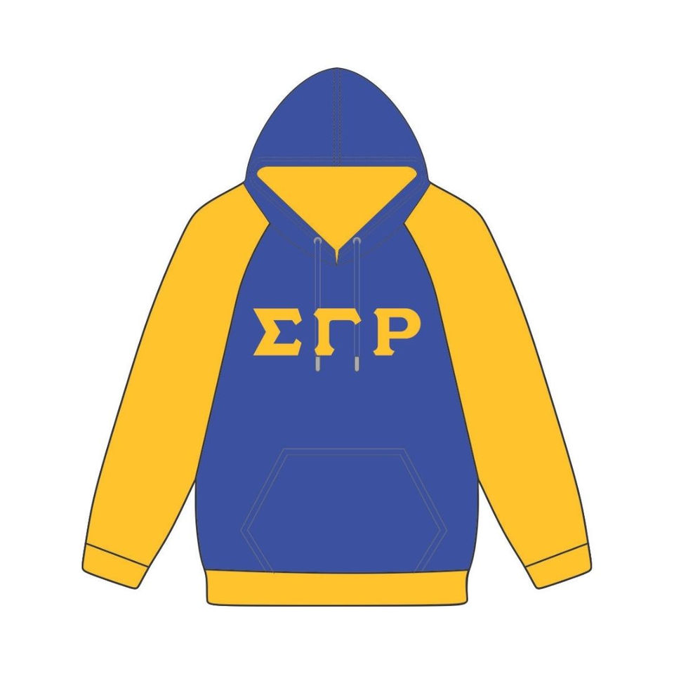 เสื้อฮู้ดแขนยาวสีน้ำเงิน ตราสัญลักษณ์ซิกมาแกมมาโร ผ้าฝ้าย แบบสวมหัว แขนเสื้อแบบแร็กแลน สำหรับชมรมนักศึกษากรีก SGRho ออกแบบพิเศษโดย Divine Nine HBCU