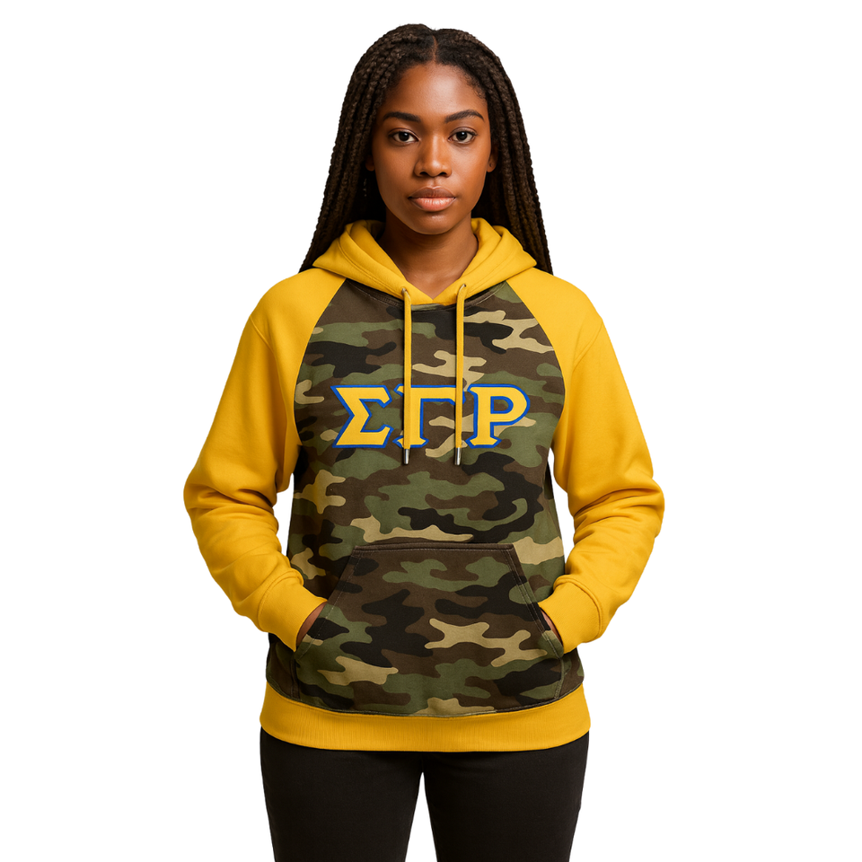 เสื้อมีฮู้ดแขนเสื้อแร็กแลนสีทองมีฮู้ดแขนเสื้อแบบสวมหัวผ้าคอตตอน sgrho กรีกเสื้อผ้าออกแบบได้ตามต้องการ
