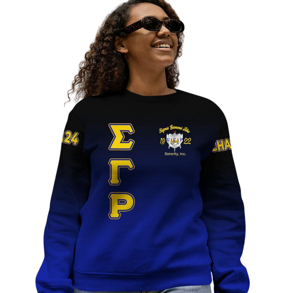 เสื้อสเวตเชิ้ตคอกลม Sigma Gamma Rho สีน้ำเงินทอง 1922 ชุดนักเรียนหญิงกรีก เสื้อผ้าขนแกะพรีเมียม เสื้อคลุมฤดูหนาว ชุดลำลองสำหรับผู้หญิง