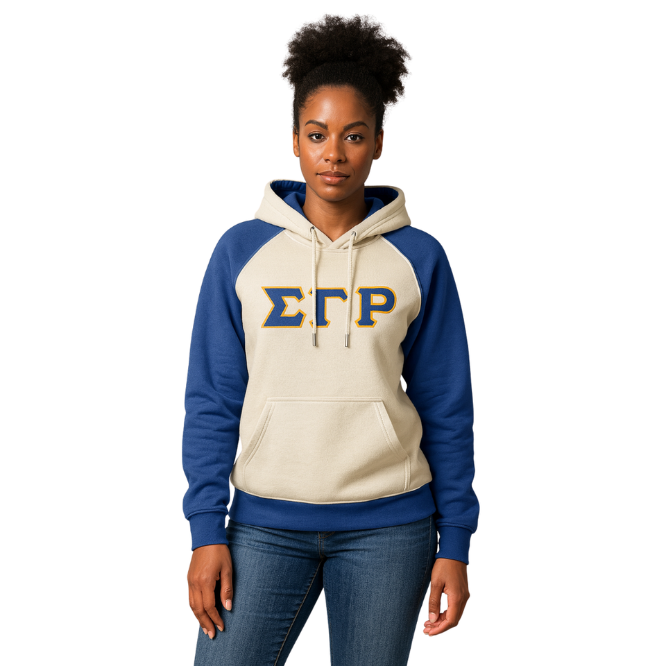 Sigma เสื้อฮู้ดแขนแร็กแลนสีฟ้าแกมม่า Rho, เสื้อผ้า hbcu Sigma grek Greek sority ออกแบบได้ตามต้องการ