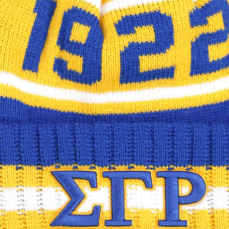 Sigma หมวกบีนนี่รุ่น Gamma Rho สีน้ำเงินเข้มผ้าแจ็คการ์ดถักลายโลโก้ทีมและที่ติดข้อมือเสื้อสวมหัวแบบอะคริลิคให้ความอบอุ่นสำหรับฤดูหนาว