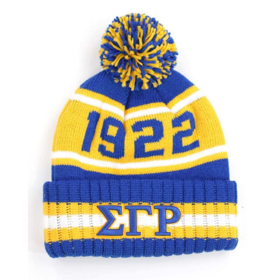 Sigma หมวกบีนนี่รุ่น Gamma Rho สีน้ำเงินเข้มผ้าแจ็คการ์ดถักลายโลโก้ทีมและที่ติดข้อมือเสื้อสวมหัวแบบอะคริลิคให้ความอบอุ่นสำหรับฤดูหนาว