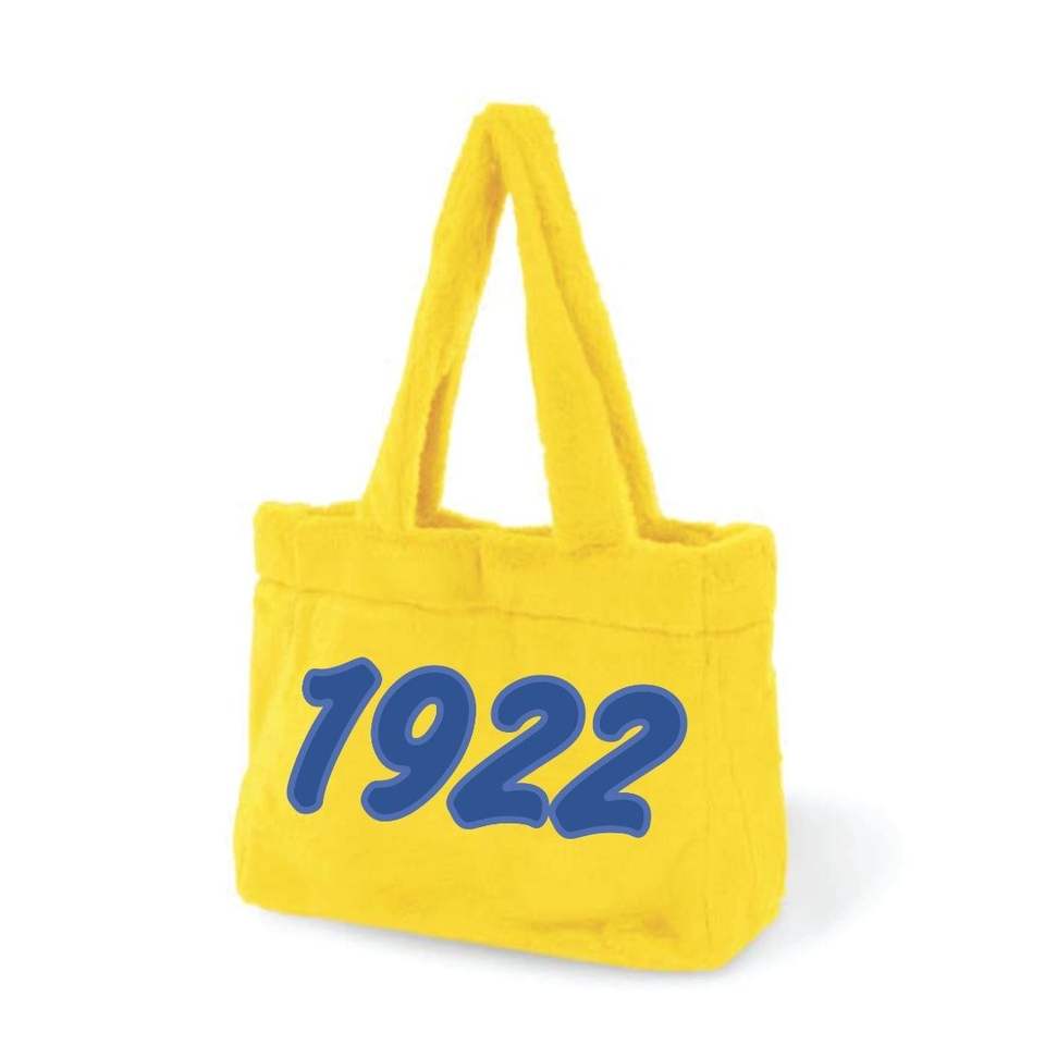 Sigma แกมม่า Rho SGR กระเป๋าเฟอร์ขนสัตว์สีทองปักตัวอักษรสีน้ำเงินเข้มกระเป๋าถือกำมะหยี่1922ชีวิตกรีกของขวัญ