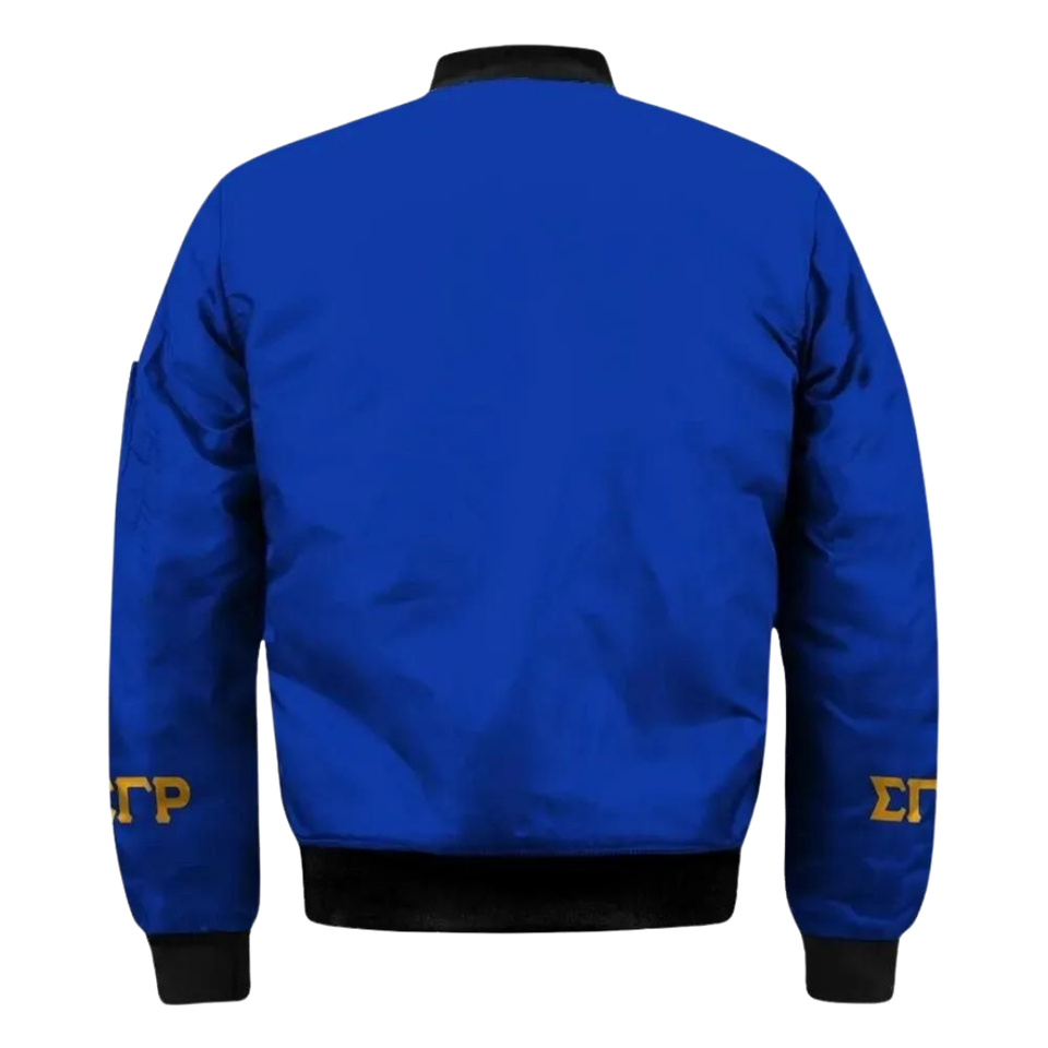 Sigma 1922แกมมา Rho sgrho เสื้อซาตินกรีกสีน้ำเงินทองตัวแทนบอมเบอร์เครื่องแต่งกายสตรี