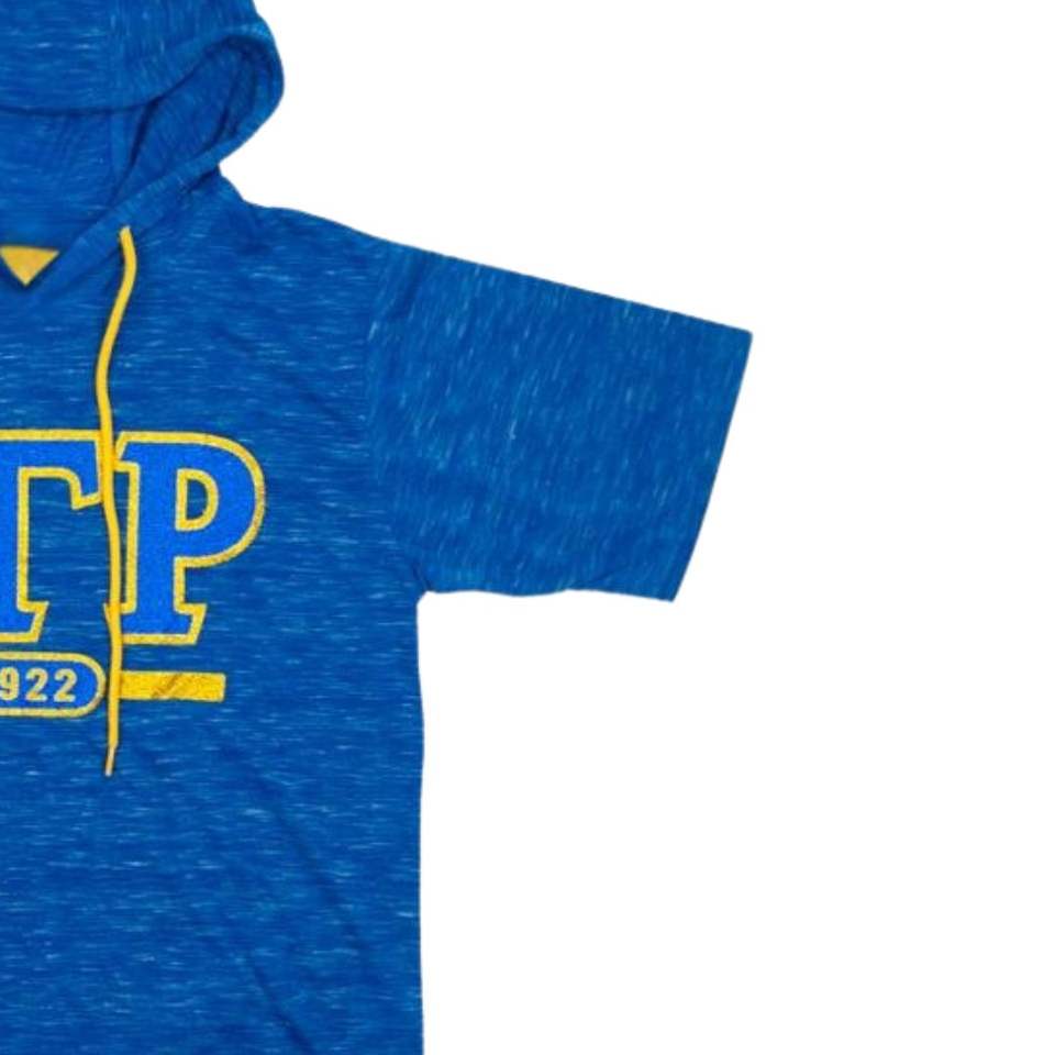 เสื้อยืดมีฮู้ด Sigma แกมมา Rho sgrho สีน้ำเงิน80โพลีเอสเตอร์เรยอน20ตัวอักษรกรีกพิมพ์ลาย