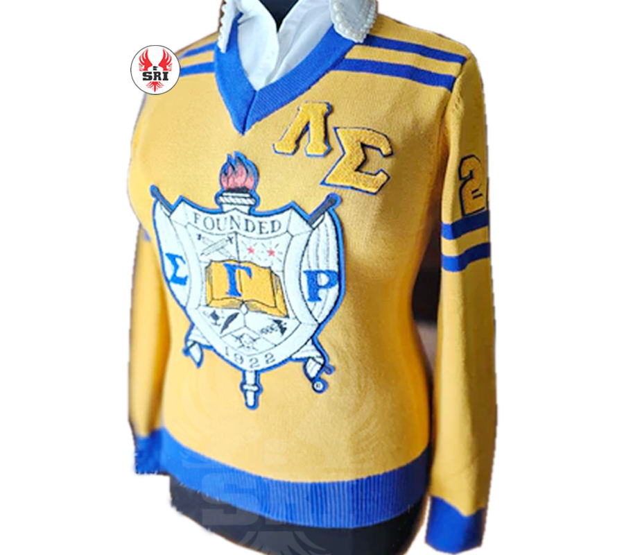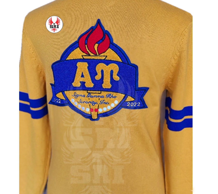 Sigma เสื้อสเวตเตอร์ถักไหมพรมอะคริลิคสำหรับผู้หญิงเสื้อสเวตเตอร์คาร์ดิแกนปักลายสำหรับชมรมแกมมา Rho soror