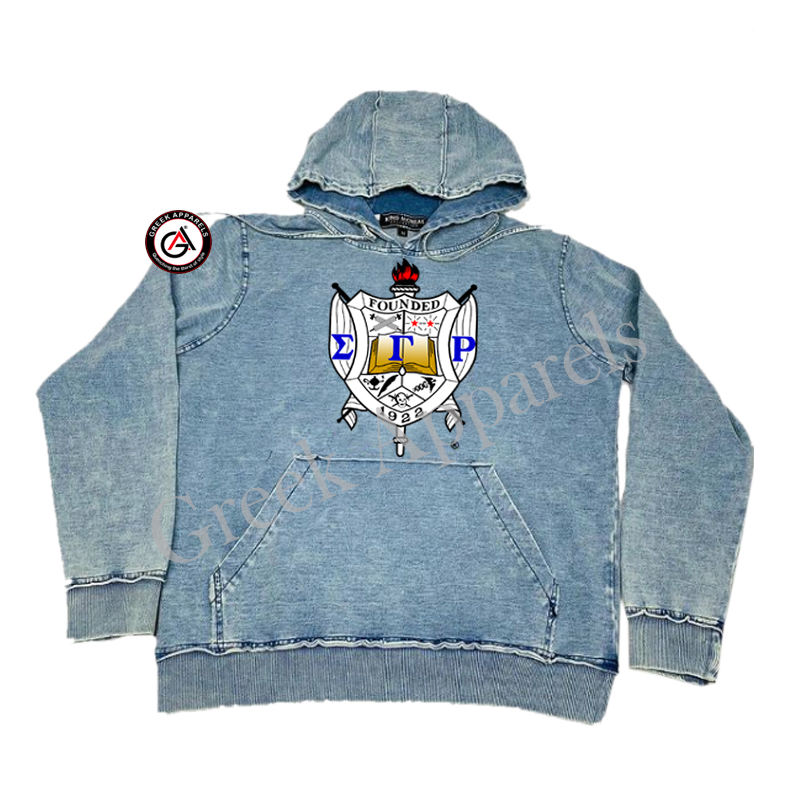 Sigma เสื้อฮู้ดปักลายแกมม่า Rho soror ผ้ายีนส์สำหรับผู้หญิงมีฮู้ดปักลายสำหรับสโมสร
