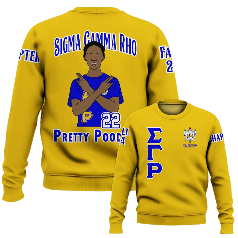 เสื้อสเวตเชิ้ตคอกลมสีน้ำเงินทอง Sigma Gamma Rho Sorority รุ่น 1922 แบบกรีก ปรับแต่งได้ด้านหน้า ผ้าฟลีซพรีเมียม เสื้อพูลโอเวอร์สำหรับผู้หญิง ฤดูหนาว