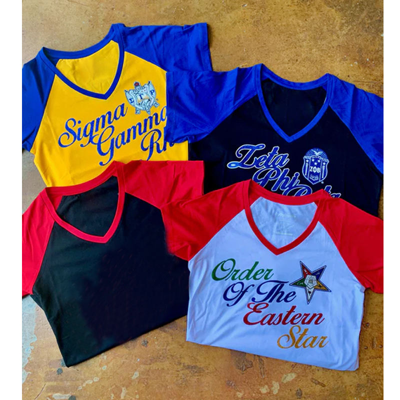 ซิกมาแกมมาโรโซโรรีตี้เสื้อยืดผ้าฝ้ายปักลายสำหรับผู้หญิง | เสื้อเจอร์ซีย์ผ้าฝ้ายโพลีเอสเตอร์ปักลาย SGRho Sorority สำหรับสุภาพสตรีสั่งทำพิเศษ