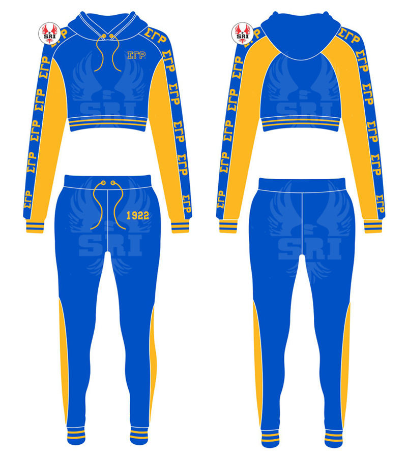 ชุดวอร์มปักลาย Sigma Gamma Rho สำหรับสตรี ทรงเข้ารูป | ชุดสูทสตรีแบบเข้ารูปปักลาย SGR Sorority แบบกรีกสั่งทำพิเศษ