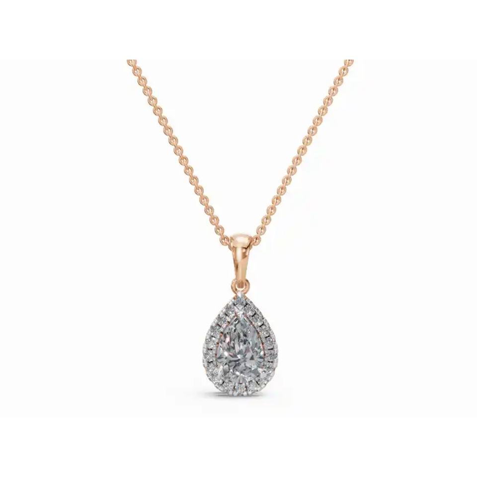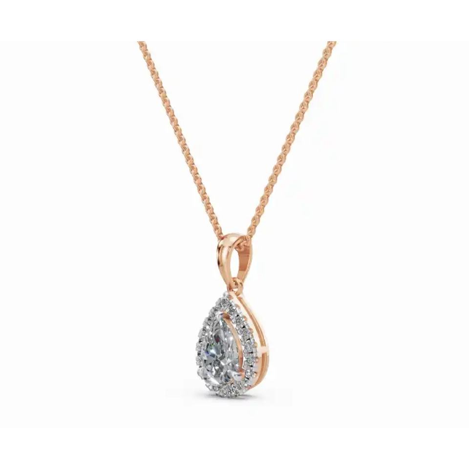 จี้เพชรรูปลูกแพร์ตลอดกาล0.697 CT Lab เติบโตขึ้น9 KT 14 KT 18 KT เครื่องประดับทองขายส่ง B2B ผู้ผลิต OEM