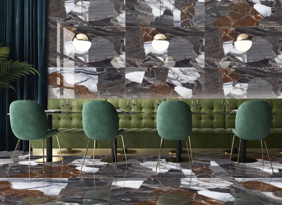 คอลเลคชั่นกระเบื้องพอร์ซเลนเงาสูง รุ่นซิกเนเจอร์ ขนาด 800x1600 1200x1800 750x1500 มม. ออกแบบมาเพื่ออาร์คิทектูร์สมัยใหม่ พร้อมคุณสมบัติสะท้อนแสงอย่างสวยงาม