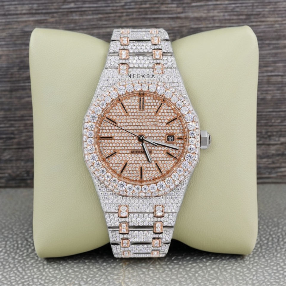 นาฬิกาเพชรโมอิสซาไนต์สุดหรู - นาฬิกาหรูหราเปล่งประกาย ผลิตในอินเดีย นาฬิกาเครื่องประดับฮิปฮอปแบบฝังเพชรที่ผ่านการทดสอบเพชร