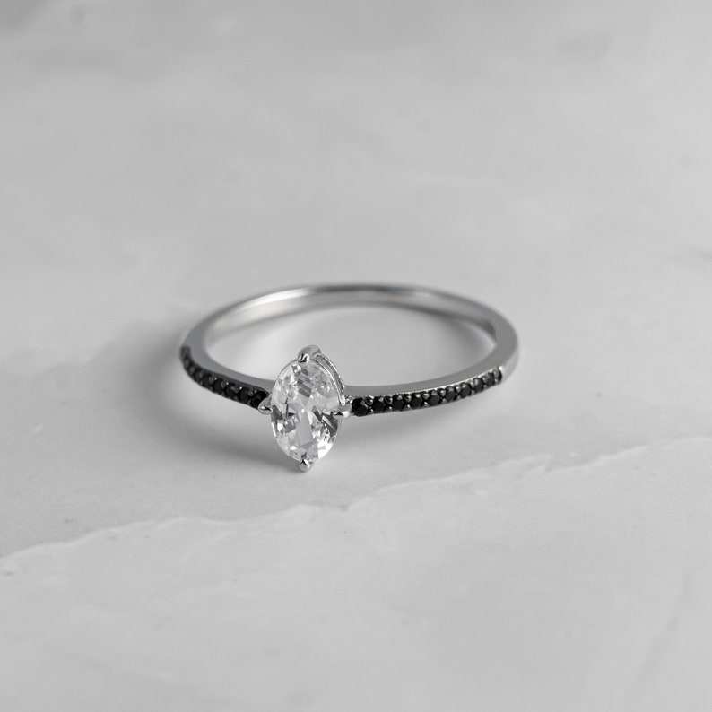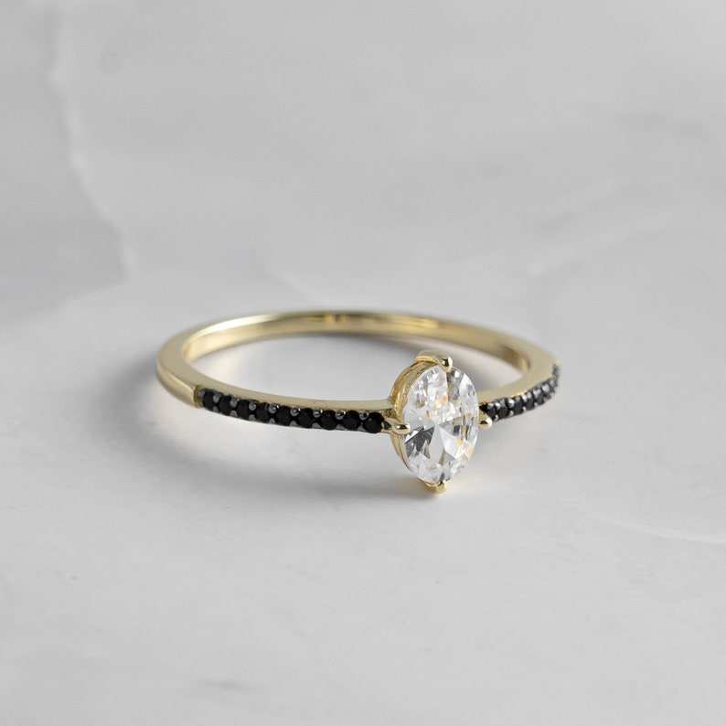 แหวนเพชรเม็ดเดี่ยวทรงรีสมัยใหม่และทรงกลมสีดำ