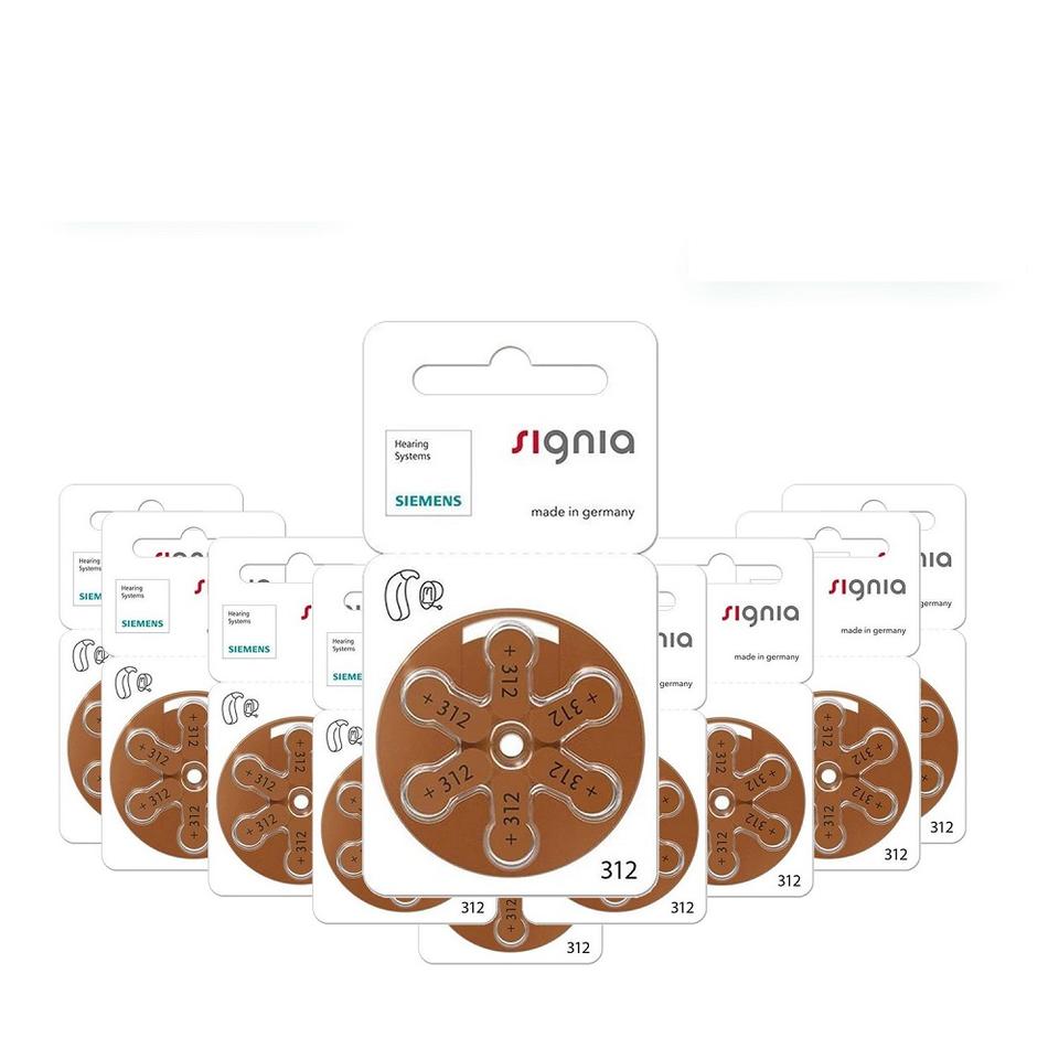 แบตเตอรี่เครื่องช่วยฟัง Signia ขนาด 312 (60 ชิ้น) - ผลิตในเยอรมนี แบบหมุนปรับได้ แพ็คสีตามสั่ง แบตเตอรี่แบบเซลล์กระดุมสำหรับเครื่องช่วยฟัง