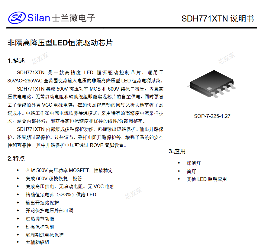 Silans SDH7712ATNTR SOP-7-225-1.27 SMD แบบไม่แยกวงจรไฟ LED ไดรเวอร์กระแสคงที่