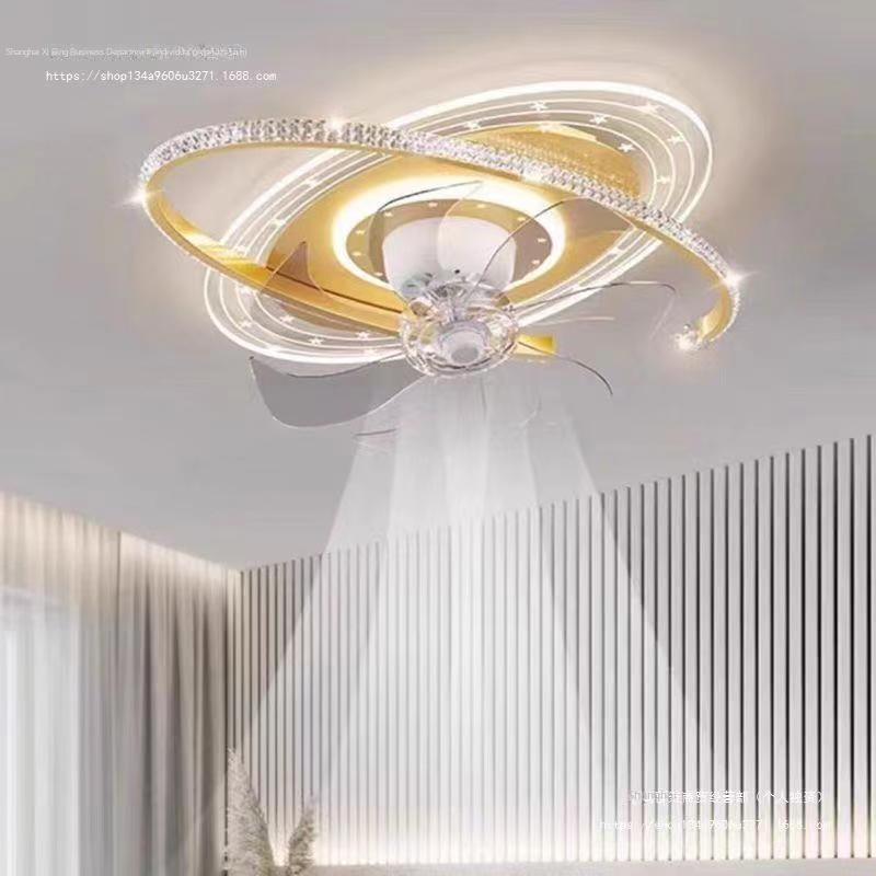 พัดลมเพดาน LED อัจฉริยะเงียบ, การออกแบบที่ทันสมัยมีรีโมทควบคุมความถี่ตัวแปรสำหรับบ้านห้องนอนเด็ก