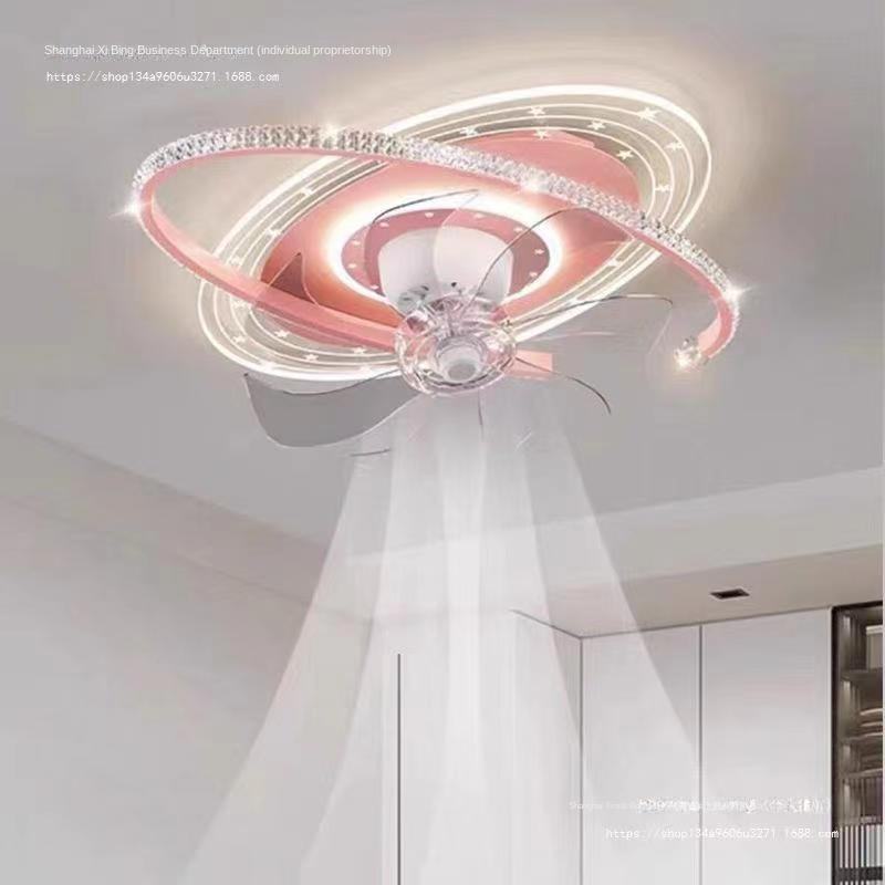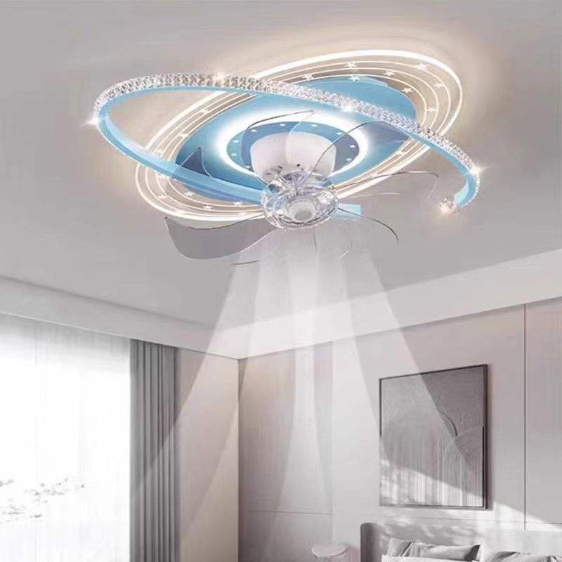 โคมไฟพัดลมเพดานหรี่แสงได้6สปีดพร้อมตัวจับเวลา7 opaline Ring RGB LIGHT