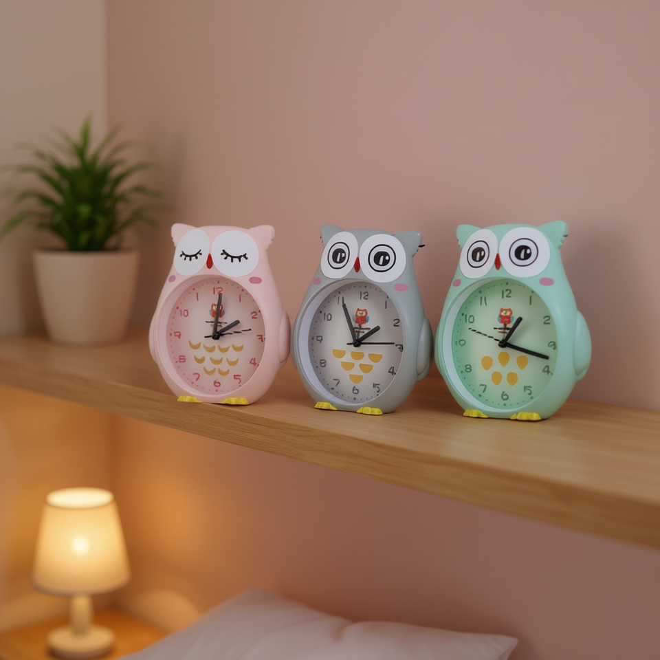 นาฬิกาแขวนผนังรูปนกฮูกการ์ตูนอิเล็กทรอนิกส์สำหรับเด็ก ควอตซ์ แอนะล็อก พลาสติก เรืองแสง ตกแต่งห้องนอน