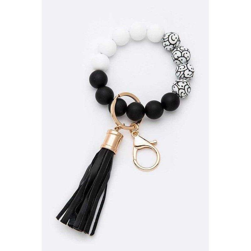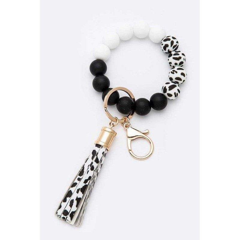 พวงกุญแจสร้อยข้อมือพู่ลูกปัดแก้วและโคมไฟคริสตัลพิมพ์ลายทำจากซิลิคอน
